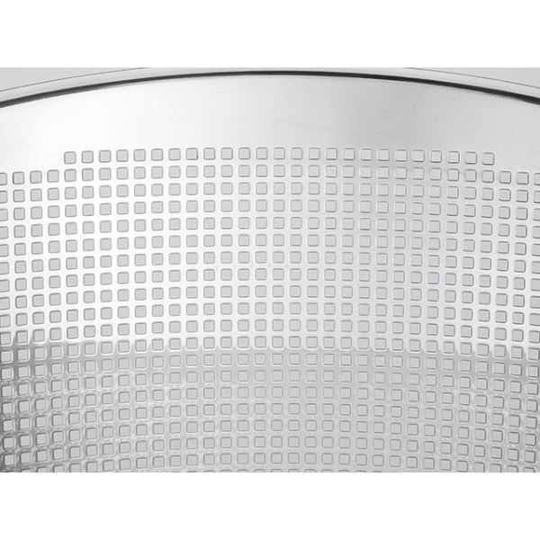 水やスープ等の液体を切るのに便利です。平底タイプで、3.5x3.5mm角穴が特徴です。取っ手が付いて持ち易いです。サイズ:直径φ480×高さ180mm材質:アルミニウム直径φ480×高さ180mm