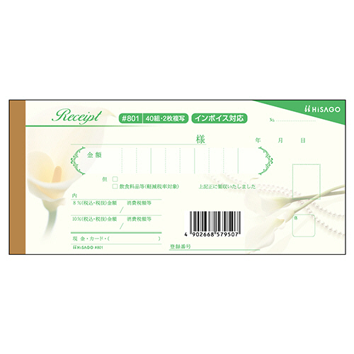 ●複写内訳/[1枚目]領収証、[2枚目]領収証(地紋・厚紙を使用)