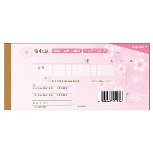 ●鮮やかな桜の花をデザインした、華やかでエレガントな領収証です。40組、5冊セットです。
