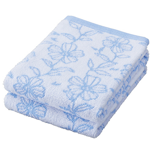 ●エレガントな花柄のフェイスタオル、ブルーの2枚入です。