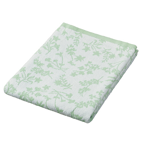 ●優し気なリーフ柄のバスタオル、グリーンです。
