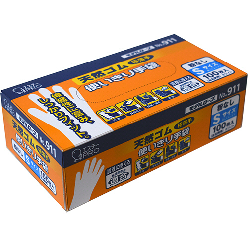 モデルローブNo.911天然ゴム使いきり手袋(粉無)S白 1セット(1200枚:100枚×12箱)