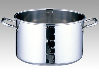 熱源を選ばないタフなアイテム。ガス火はもちろん業務用電磁調理器には特にお勧めです。高耐久ボディ・鍋本体には耐久性・耐腐食性に優れたモリブデン鋼を採用。アルゴン溶接で加工された取っ手部は内面にビスが無く洗浄が簡単です。一目で判る目盛付・便利な目盛付きで仕込量や調合目安がわかりやすく調理をサポートします(寸胴鍋、半寸胴鍋のみ)。※IH対応。