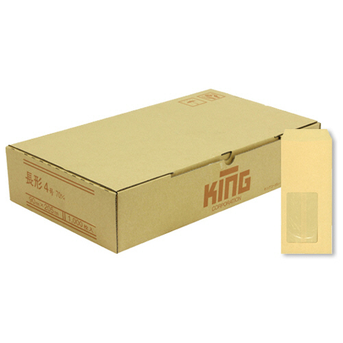 ●口のりなしの窓明封筒、郵便番号枠なしの長4・クラフト色、1000枚入です。