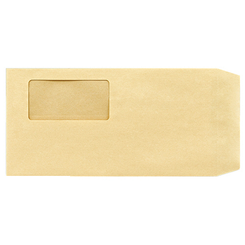 紙は古紙配合率40%、窓材は再生プラスチック配合率50%の環境に配慮した枠ナシ事務用封筒。