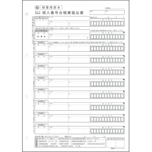 個人別・世帯単位(従業員及び扶養親族用)個人番号台帳兼届出 1パック(10組) 【5-8営業日遅延】