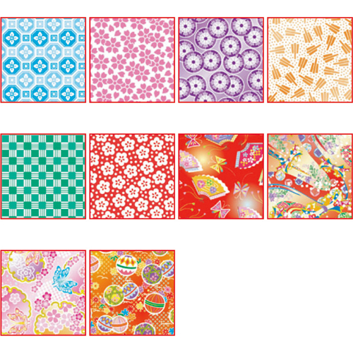 バラエティー豊かな10柄の千代紙が入った大容量お徳用タイプ!