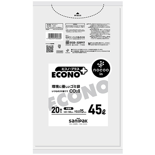 【高密度ポリエチレン(カサカサ)】CO2排出削減を考えた環境配慮型のゴミ袋です。一般的なゴミ袋とほぼ同じ厚さの標準タイプです。