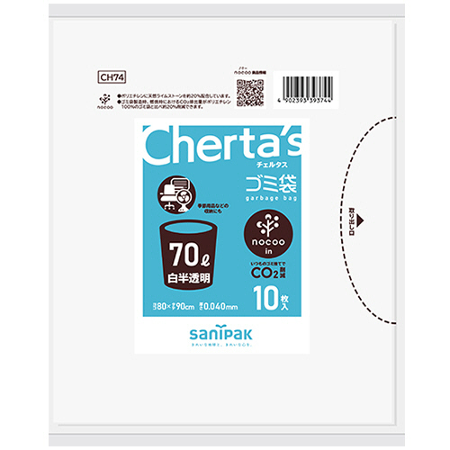 ●70L・厚さ0.040mmの中身が見えにくい白半透明のゴミ袋、10枚入です。