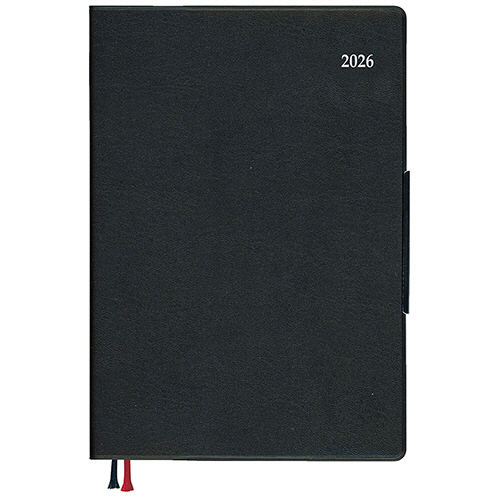 ●1週間の予定を見ながらメモが書ける1週間+横罫(週間レフト)レイアウト。月間予定表はブロックタイプ。B6サイズのブラックです。