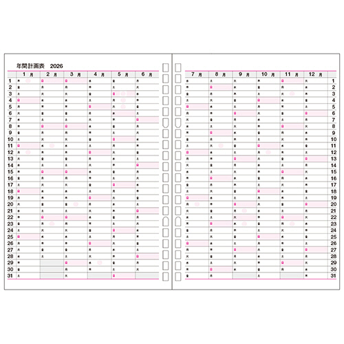 ●内容/プランニングテーブル、年間計画表、月間計画表、週間ダイアリー、ノート16ページ、アドレス4ページ