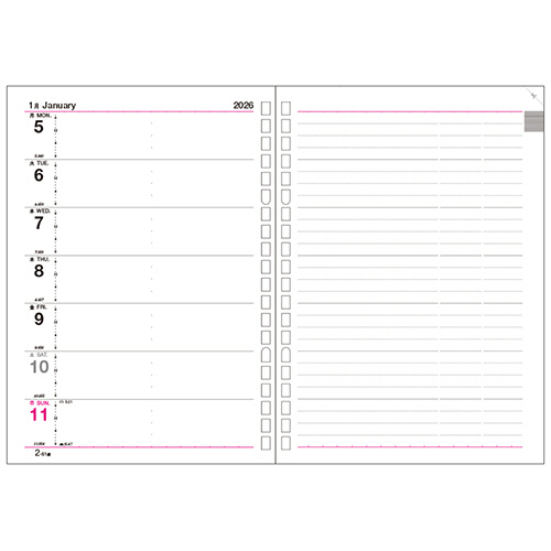 リングバインダーのリフィルとして使える見開き1週間ダイアリーです。