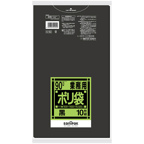 Kシリーズ 業務用ポリ袋 強化 黒 90L 0.025mm 1パック(10枚) 【5-8営業日遅延】