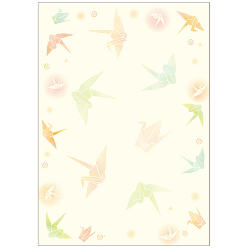 ●エンボス加工により、和紙のような風合いが楽しめる折り鶴柄の用紙です。10枚×5冊セット。