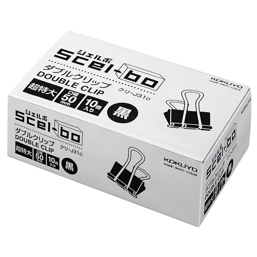 ダブルクリップ(Scel-bo) 個箱タイプ 超特大 口幅50mm 黒 1パック(10個)