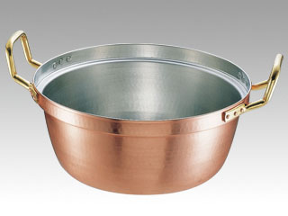 サイズ:φ555mm、板厚2mm、深さ220mm材質:銅重量:8kg容量:31Lφ555mm、板厚2mm、深さ220mm