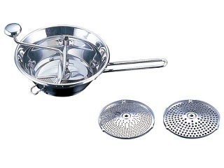 1.5/2.0/5mmの替刃3枚付き。替刃寸法:φ140mm。ムーランは野菜(トマトなど)・果物等の裏漉しに最適です。頑丈なINOX製ですから、プロのハードな使用にも耐えます。サイズ:φ240(393)×高さ85(170)mm材質:18-10ステンレスφ240(393)×高さ85(170)mm