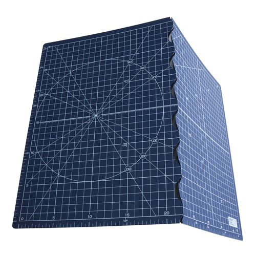 ●広げるとA3、折りたためばほぼA4のカッターマット。色はネイビーです。