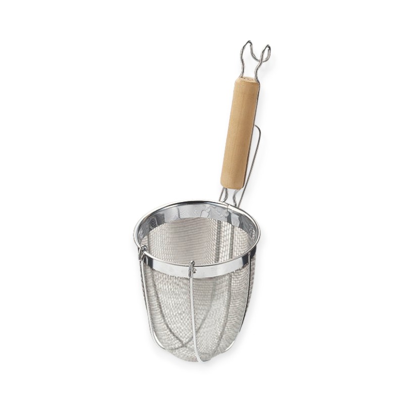 燕三条製。丈夫な18-8ステンレス製。材質:[網]18-8ステンレス、[柄]天然木品番:041032