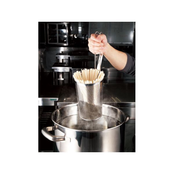 深型で底が平らになっており、ざるうどん等の麺類を煮たり、水切りをするのに便利です。共柄なので洗いやすいです。サイズ:直径φ130×高さ200mm材質:ポリカーボネート、ステンレス直径φ130×高さ200mm