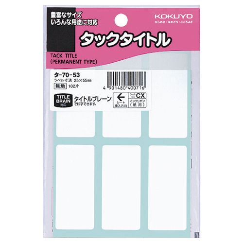タックタイトル 四角 白無地 25×55mm 1セット(1020片:102片×10パック)