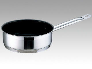 電磁調理器対応(IH対応)。業務用鍋。耐摩耗性が強いエクスカリバーコーティング加工。カレーやシチューのルーなど、こびりつき易い食材の調理に最適。洗い易くお手入れもカンタン。取手部分をスポット溶接、鋲止メの二重加工を施してあり、耐久性に優れています。滑りにくく、持ちやすさを追求したハンドル形状です。