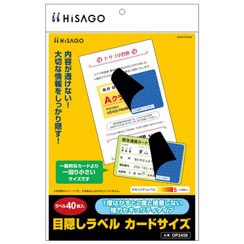 ●内容が透けない!大切な情報をしっかり隠す目隠しラベル、各種カードに貼れるサイズです。40シート入。