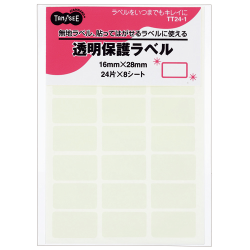 強粘着透明保護ラベル 16×28mm 1パック(192片:24片×8シート)