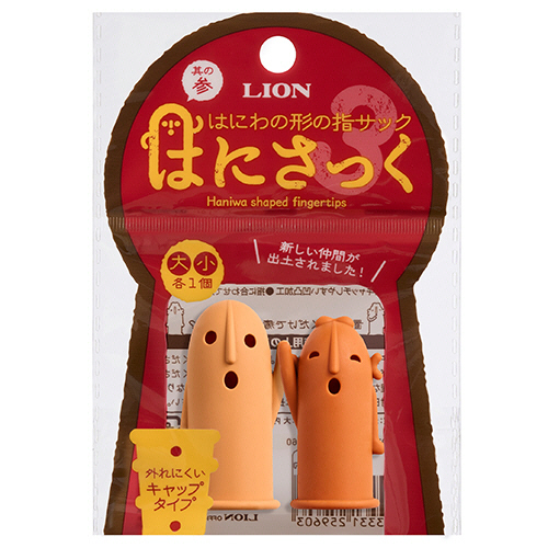 ●「応援・サポート」をテーマにした表情豊かなはにわ型の指サック。大・小各1個入。(品番:HA-207)