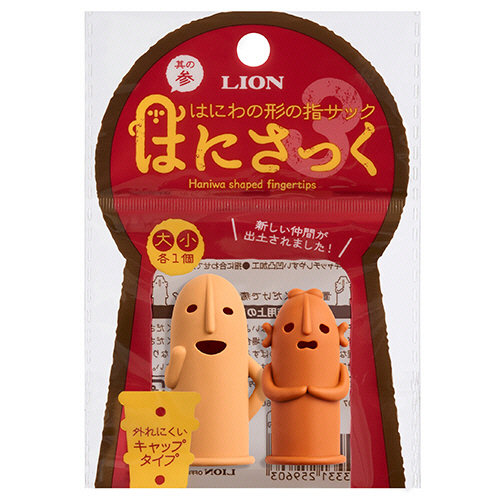 ●「応援・サポート」をテーマにした表情豊かなはにわ型の指サック。大・小各1個入。(品番:HA-209)