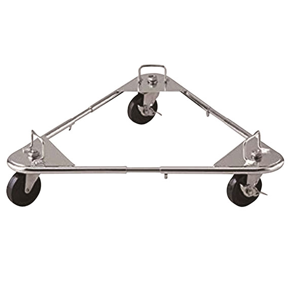 オールステンレス304製のトライアングルキャリーフリーサイズ。サイズは自由にネジ(六角レンチ付)で変更でき、キャスターも自由に選択できます。サイズ:H123mm、[内寸許容範囲]φ300~415mm材質:18-8ステンレス/[キャスター]φ50mmステンレス123mm