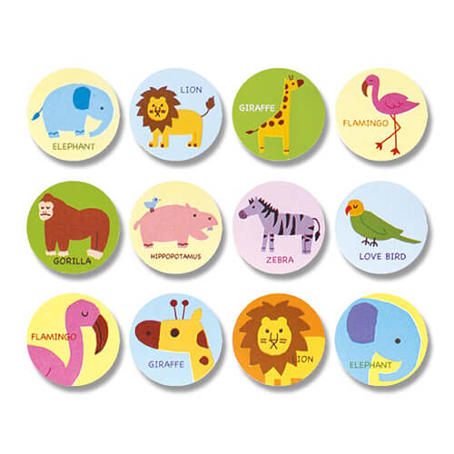 南国の動物たちのイラストが印刷されたアソートタイプのギフトシール。サイズは直径18mmで、材質は光沢紙です。かわいらしいタッチで12種類のイラストが描かれています。お子様へのギフトやお手紙の封かんなどにピッタリです。また、日々のタスクを達成したときのごほうびシールとしてもお使いいただけます。