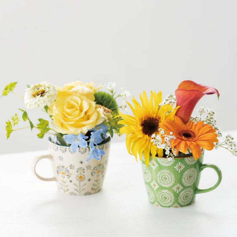 手描き風の花柄がかわいい陶器のマグカップです。箱に入れて納品いたしますので、そのまま雑貨として販売していただけます。お菓子などを入れるラッピングの器としてもおすすめです。箱付き。食品対応。食品衛生法適合商品。サイズ:W115(75)×H75mm材質:陶器容量:約340ml115×75mm