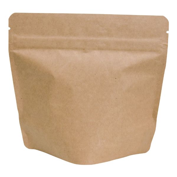 アルミスタンドチャック付袋。珈琲豆に関わらずお菓子等入れれます。上部を熱シーラーすれば脱酸素剤対応です!サイズ:155×80×120(155)mm材質:クラフト紙50、アルミ蒸着PET12、LLDPE60重量:10g155×80×120mm