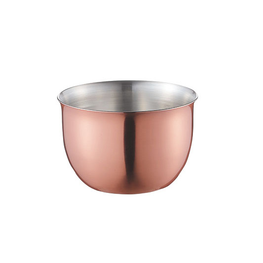 銅は熱伝導性に優れ、冷たいお酒を注ぐと一気に冷えて、その冷たさを保持してくれる。冷たいお酒を注げば表面に水滴がつき、見た目もオシャレ。古来より酒器に使用されてきた錫はイオン効果が高く、お酒を美味しくまろやかにしてくれる。ビールの泡もきめ細かくなる。長く使い込むうちに独特の風合い・味わいが出てくる。[品番]447120。