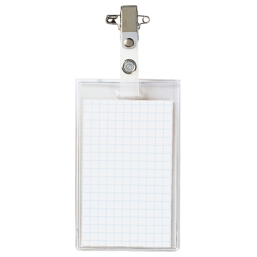 ●名刺・ICカードの脱落しにくくする、タテ型のタッグ名札50個セットです。