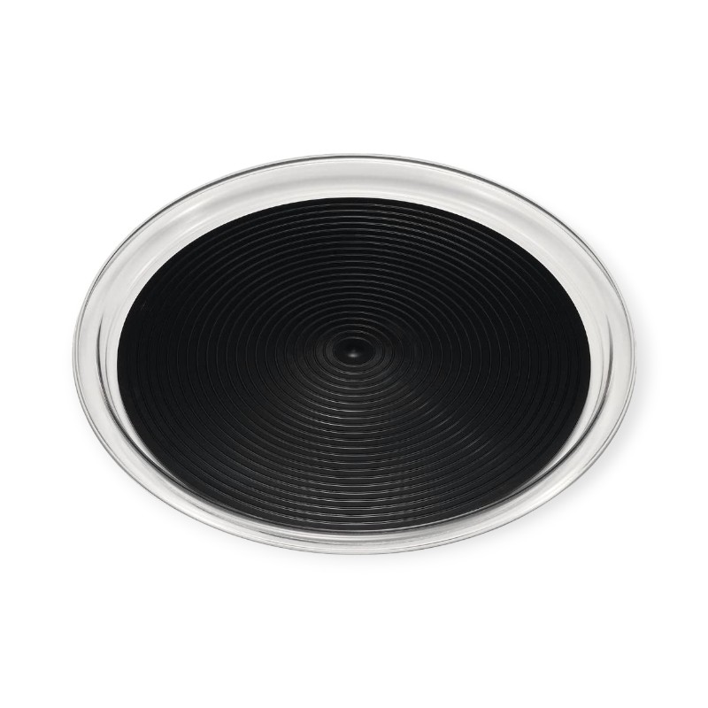 傾けても滑らず、倒れにくい。マットがはがせてお手入れもラクラク。[耐熱温度]トレー:80℃、マット:70℃。サイズ:φ285×18mm、12インチ材質:[トレー]アクリル樹脂、[マット]EVA樹脂メーカー品番:600903φ285×18mm