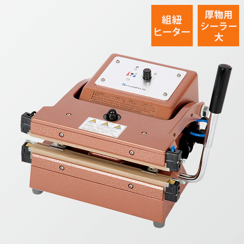 「透明ラミネート袋」や「クラフトラミネート袋」、「アルミラミネート袋」のシールに欠かせない卓上型の手動シーラー(小型サイズ)。