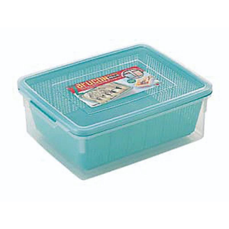 ザルとコンテナーがセットになって使い方いろいろ。耐熱温度:-20℃~120℃。業務用冷蔵庫にフタをしたまま保存OK!積み重ねOK。サイズ:371×290×H133mm材質:ポリプロピレン371×290×H133mm
