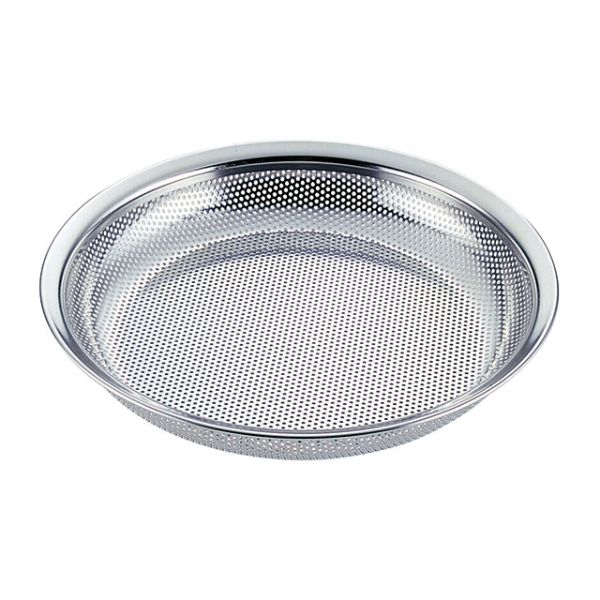 盆型のザルボール。サイズ:直径φ160×高さ34mm、パンチング穴φ1.5mm材質:18-8ステンレス直径φ160×高さ34mm、パンチング穴φ1.5mm