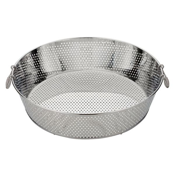 蒸し物の調理に使用できます。両手付。サイズ:直径φ740×底径φ640×高さ180mm、パンチング穴φ6mm材質:18-8ステンレス直径φ740×底径φ640×高さ180mm、パンチング穴φ6mm