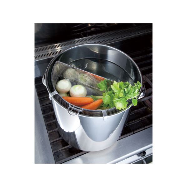 食材からダシを取ったり、スープを作るのに便利です。半円型が特徴です。サイズ:直径φ410×高さ360mm材質:18-8ステンレス直径φ410×高さ360mm