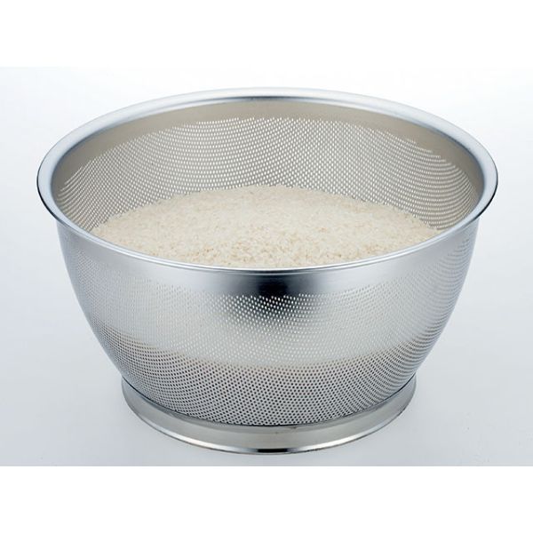 主に米揚げ用のザル。サイズ:直径φ300×高さ165mm、パンチング穴φ1.5mm材質:18-8ステンレス直径φ300×高さ165mm、パンチング穴φ1.5mm