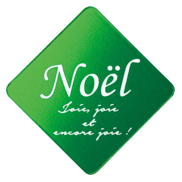 シックで大人の雰囲気のクリスマスケーキピックです。いちご1個分のサイズ感で、フルーツの色を引き立てるスクエア型のグリーン。ツヤっとした光沢感がクリスマスの特別感を演出してくれるアイテムです。片面デザイン。食品対応。
