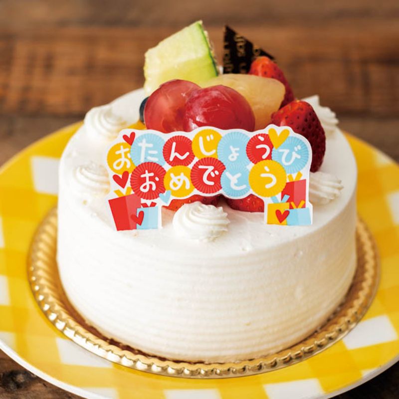 ハニカムとプレゼントのイラストに「おたんじょうびおめでとう」のメッセージをあしらったカラフルでポップな誕生日のケーキピックです。ホールケーキにぴったりの大き目サイズのケーキピックです。片面デザイン。食品対応。サイズ:W80×H40mm材質:PP80×40mm