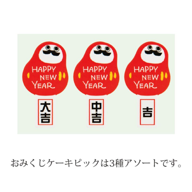 年始にぴったりの華やかなケーキピックです。縁起の良い富士山や、おみくじピックで運試しをして、お正月を楽しみましょう!片面デザイン。食品対応。サイズ:W23×H43mm材質:PP43×23mm