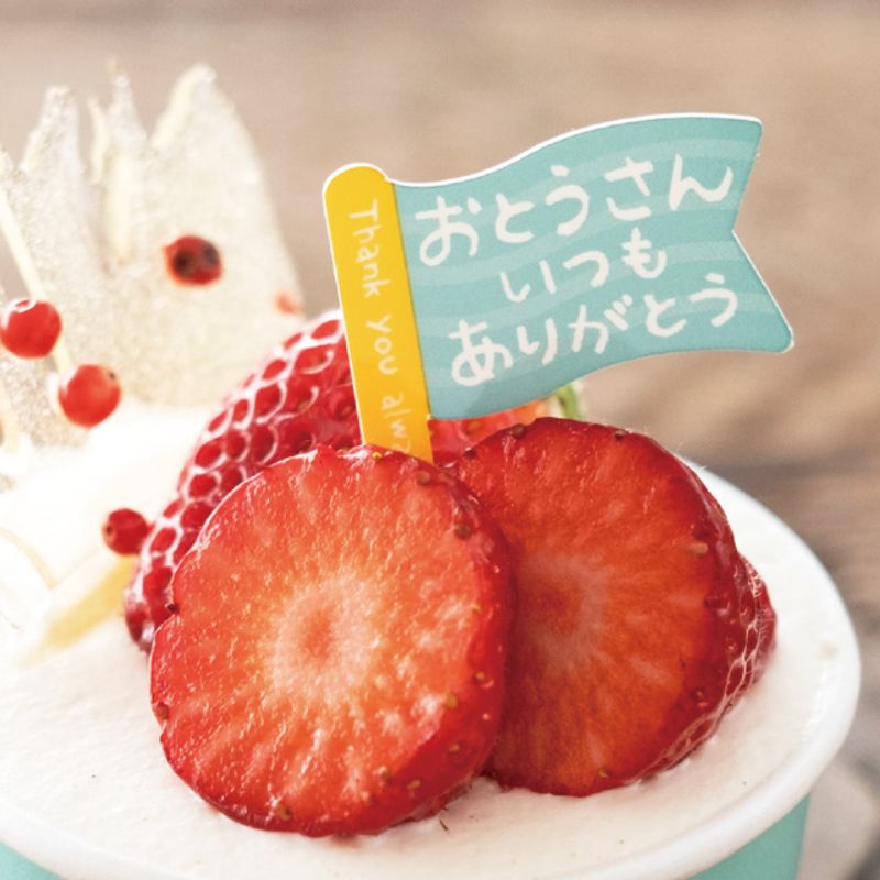 かわいい旗型の父の日のケーキピックです。父の日のイベントのアピールやお父さんへのプレゼントのメッセージとしてもおすすめのケーキピックです。旗の形がイベント気分を盛り上げます。片面デザイン。食品対応。サイズ:W34×H46mm材質:PP46×34mm