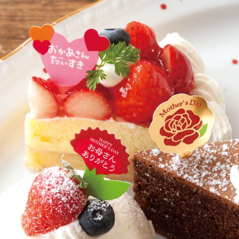 ハートフルでかわいい母の日のピックです。母の日のケーキのアピールや、お母さんへのプレゼントのメッセージとしても。片面デザイン。食品対応。サイズ:W32×H40mm材質:PP40×32mm