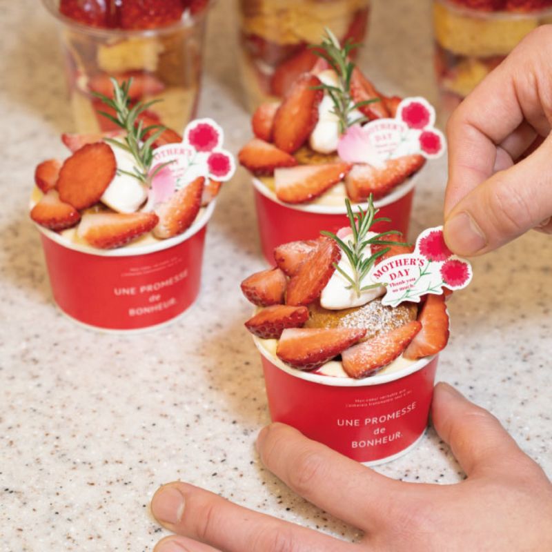 ハートフルでかわいい母の日のピックです。母の日のケーキのアピールや、お母さんへのプレゼントのメッセージとしても。片面デザイン。食品対応。サイズ:W37×H27mm材質:PP37×27mm