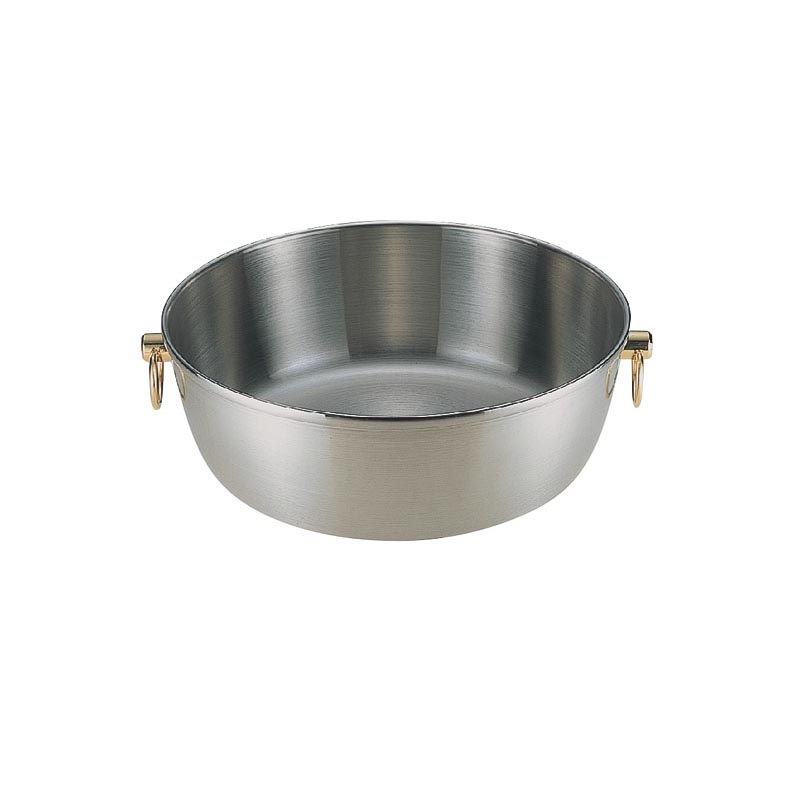 IH対応のしゃぶしゃぶ鍋やちり鍋、うどんすき鍋などが楽しめる卓上鍋です。サイズ:φ302×108mm、[厚さ]1.5mm材質:BAクラッド鋼板容量:5.6L品番:290013φ302×108mm